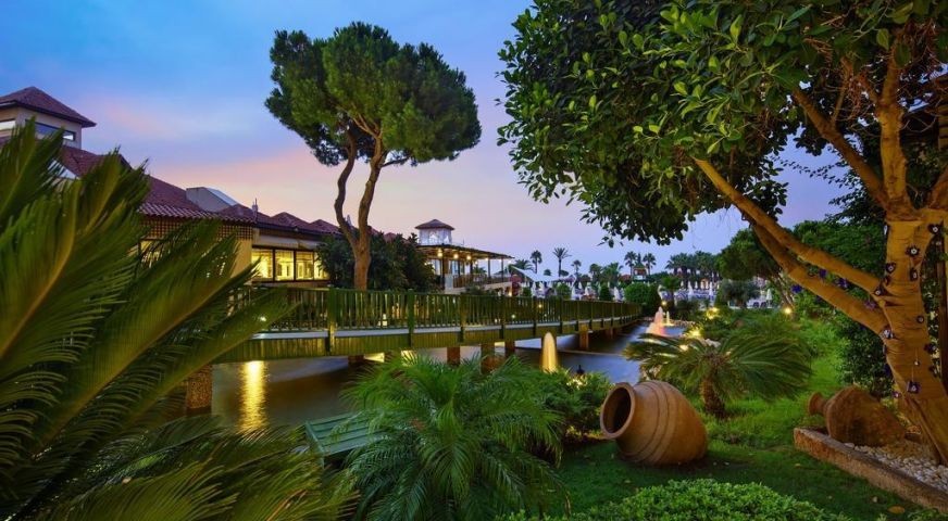 Хотелът се намира в град Белек, на голяма територия, заобиколена от борови гори. Предлага частен плаж на брега на Средиземно море, открит и закрит басейн, аквапарк, фитнес център, турска баня, сауна. Спа центърът предлага масажи и спа процедури. Гостите могат да посетят зоологическата градина или да яздят коне и понита в центъра за езда. Територията на хотела е много добре поддържана и озеленена, така че почиващите могат да се насладят на една незабравима ваканция, както и на красотата на района.