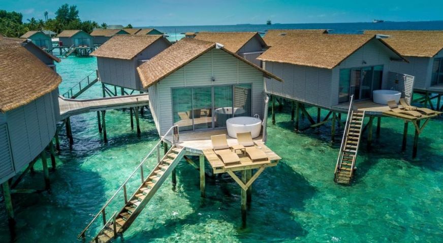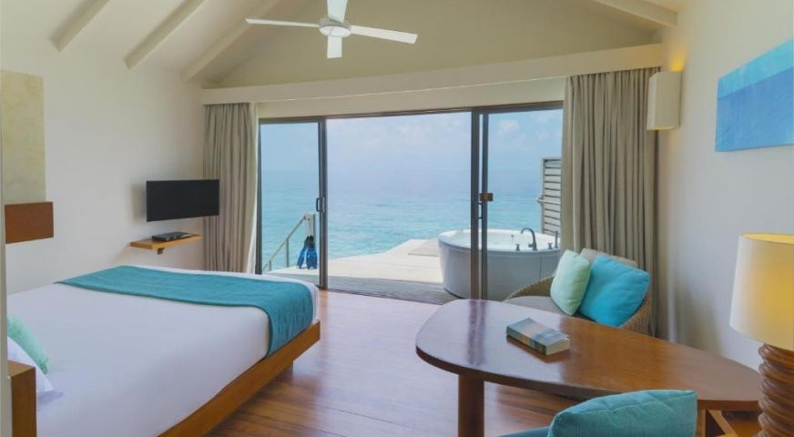 В стаите: Всички 140 вили се смесват със зеления интериор и бял прахообразен плаж, използвайки преливащи се и естествени архитектурни форми и хармоничен декор. Всички са с красив изглед към синята лагуна. Самостоятелната баня е с душ или СПА вана. Стаята включва безплатен Wi-Fi, баня с душ, тоалетни принадлежности, сешоар, чехли, сейф, телефон, климатик, вентилатор на тавана, телевизор, DVD плейър, удобства за приготвяне на чай и кафе, меню с възглавници. Предлага се и минибар (срещу заплащане). Ежедневното почистване е включено в цената на стаята.