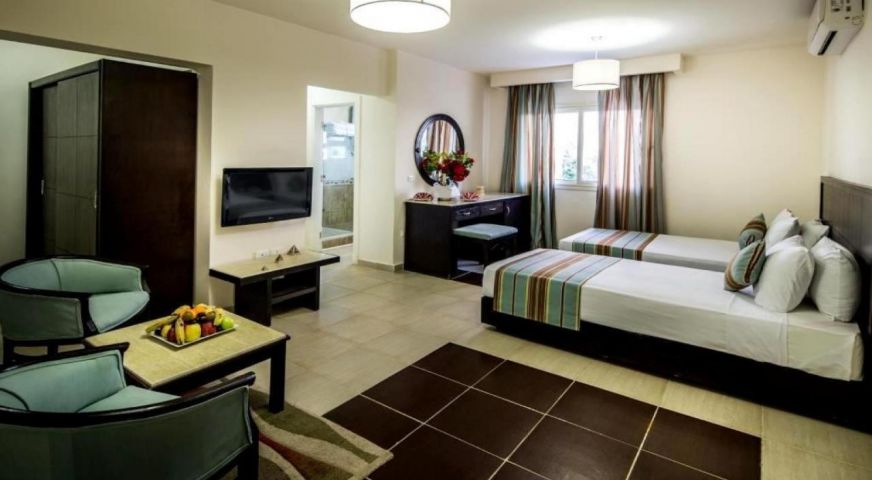 El Karma Aqua Beach Resort се намира в северната част на Хургада, на най-естествения залив, известен със своя спокоен, девствен и бял пясъчен плаж. Разположен между кристално чистите води на Червено море и пъстрия цвят на египетската пустиня, курортът ще ви донесе спокойствие и почивка по време на вашата заслужена почивка.