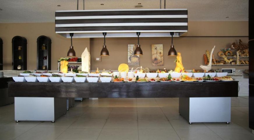 С невероятна гледка към морето и басейна, плажният ресторант предлага тематичен обяд и вечеря на шведска маса.