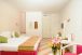 Тройна стая с изглед към градината: С капацитет до 3 възрастни площ 34 кв. м. Едно помещение с 1 спалня и 1 единично легло.