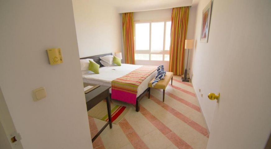 Джуниър суит с морски изглед: С площ 38 кв. м. и капацитет до 2 възрастни + 1 дете. Представлява едно помещение със спалня, просторен кът за сядане с диван, маса столове, и голяма тераса с гледка към морето.
