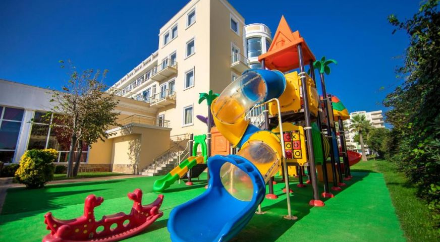 Основен ресторант, а-ла-карт ресторант, 4 бара, 1 открит басейн, водна пързалка, фитнес, СПА център, конференти зали, анимация, безплатен паркинг, безплатен Wi-Fi (на цялата територия на хотела).
