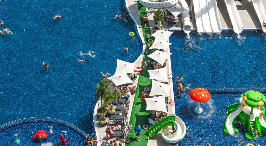 Безплатни услуги: 6 водни пързалки, външен басейн, развлекателни дневни и вечерни прогами (според програмата на хотела), тенис корт, WiFi – в общите части и в стаите