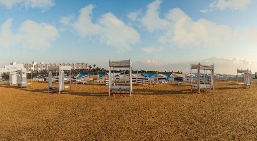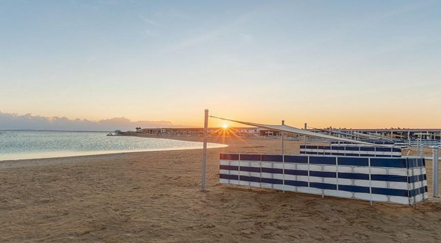 Собствен пясъчен плаж със залив и 3 плувни басейна, включително 1 за деца с чадъри, шезлонги с матраци, плажни огради за защита от вятъра, обслужване от бара, спасители на басейна и на плажа, кърпи за плажа и басейна, табели около басейна;