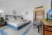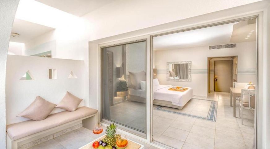 Всички стаи и суити са модерно обзаведени и разполагат с телевизор и балкон с изглед към басейна или морето. Самостоятелните бани са с душ, сешоар и халати.