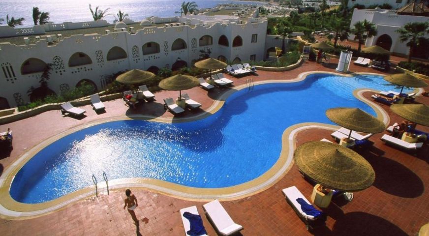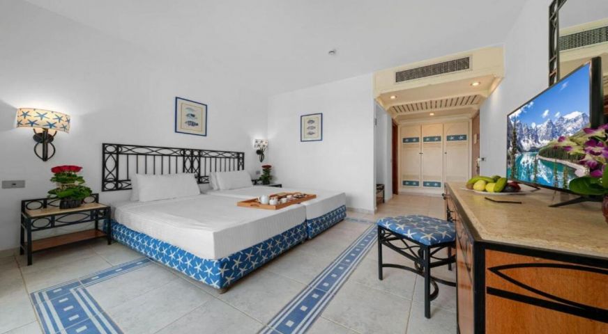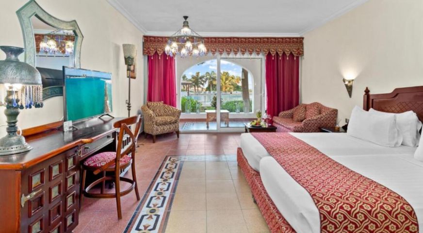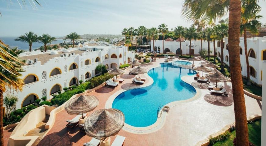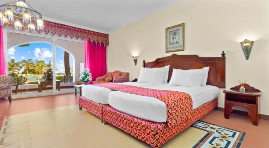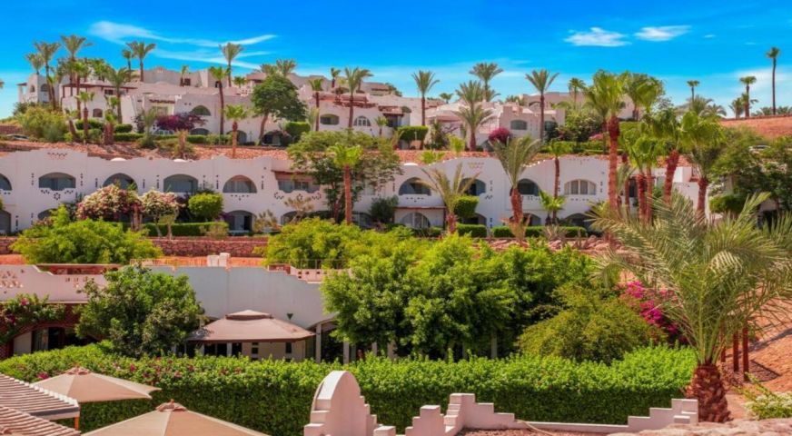 Domina Coral Bey Resort 5* Това е най-големия комплекс на територията на Шарм Ел Шейх с площ над 1000 000 кв.м разпределени в 6 квартала. Предвижването е с колички. Нашите туристи се настаняват в квартал Oazis или Bella Vista в стандартни стаи, като 90 % от тях са с гледка море или басейн . Настаняване на дете или трети възрастен е на разтегателен диван.
