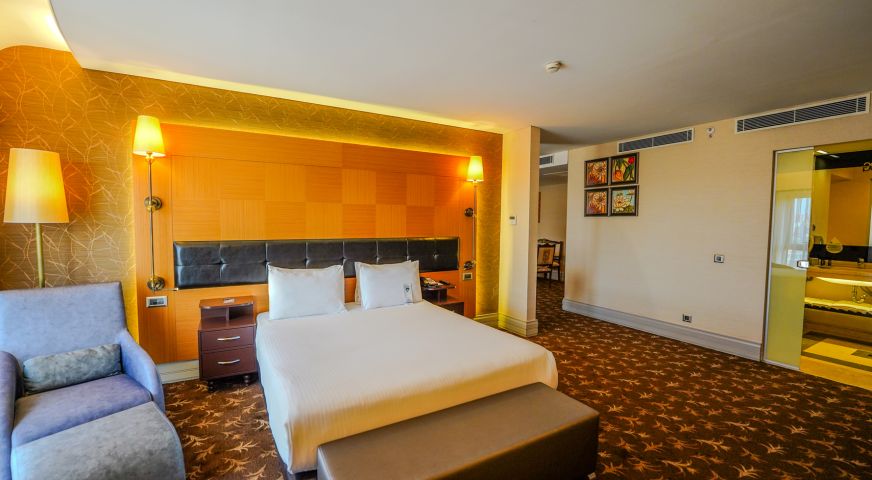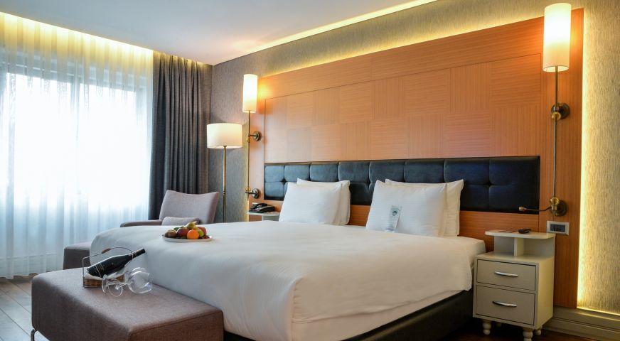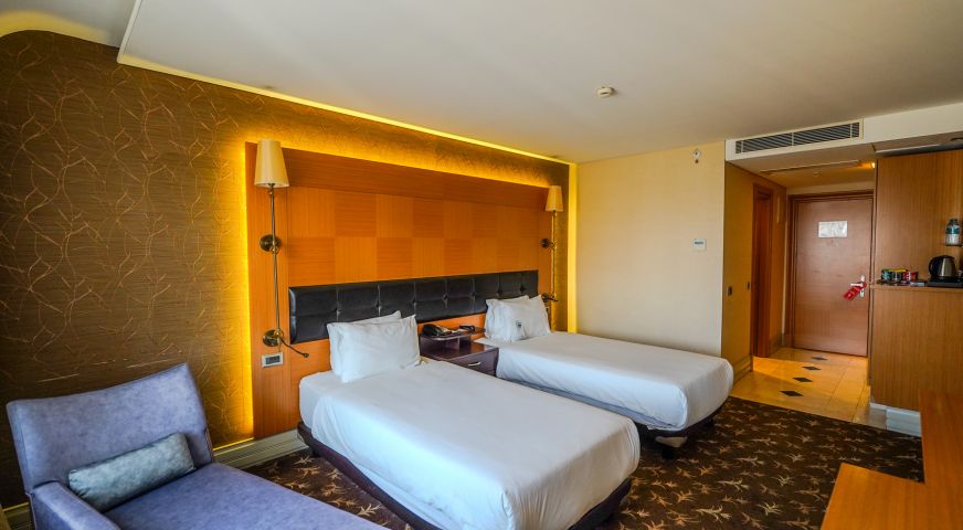 Разполага с 305 стаи: Standard Room (28 m²), Superior Triple Room (32 m²), Superior Double Room (30 m²), Junior Suite (52 m²), Business Suite (56 m²), Connection Room (58 m²). Стаите предлагат високо ниво на комфорт с изключително модерния си и изискан дизайн. Всички стаи са оборудвани с климатик, телевизор, телефон, баня с душ/вана, сешоар, минибар (платен), сейф (платен), безплатен високоскоростен Wi-FI. Почистване на стаите - всеки ден.