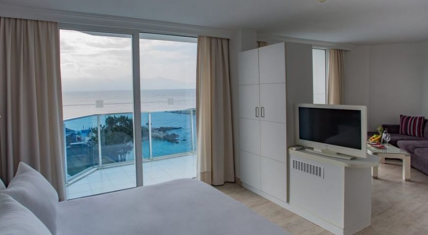 Хотелът се състои от 2 основни сгради (4 и 5 етажа, асансьор, 205 стаи) и 2 допълнителни сгради (3 етажа, без асансьор, 55 стаи), в които са разпределени 263 климатизирани стаи: 49 Standard Land View Room (25 кв.м), 197 Standard Sea View Room (25 кв.м), 14 Standard Room with Bunkbed Sea View (25 кв.м), Junior Suites, Suites, Family Room, King Suit, Bunk Room. Всички стаи са оборудвани с телевизор, телефон, сейф, минибар, кана за вода, баня с душ и сешоар, безплатни тоалетни принадлежности, балкон, Wi-Fi. Почистване на стаите – всеки ден, смяна на бельото и кърпите – 3 пъти в седмицата.
