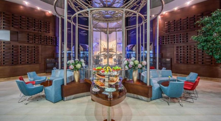 Хотелът се състои от една 7-етажта сграда (5 асансьора), в която са разпределени 401 климатизирани стаи: 6 Deluxe Family Suite (55 кв.м), 19 Deluxe Junior Suite (43 кв.м), 16 Deluxe Family Doublex Room (47 кв.м), 2 Deluxe Royal Suite (81 кв.м), 4 Deluxe Grand Suite (61 кв.м), 67 Deluxe Land View (28 кв.м) и 263 Deluxe Sea View (28 кв.м). Всички стаи са оборудвани с телефон, сателитна телевизия, минибар, машина за кафе Nespresso, сейф, ютия и дъска за гладене, баня с вана/душ, сешоар, безплатни тоалетни принадлежности, кантар, Wi-Fi . Почистване на стаите - всеки ден. Смяна на спално бельо - на всеки два дни.