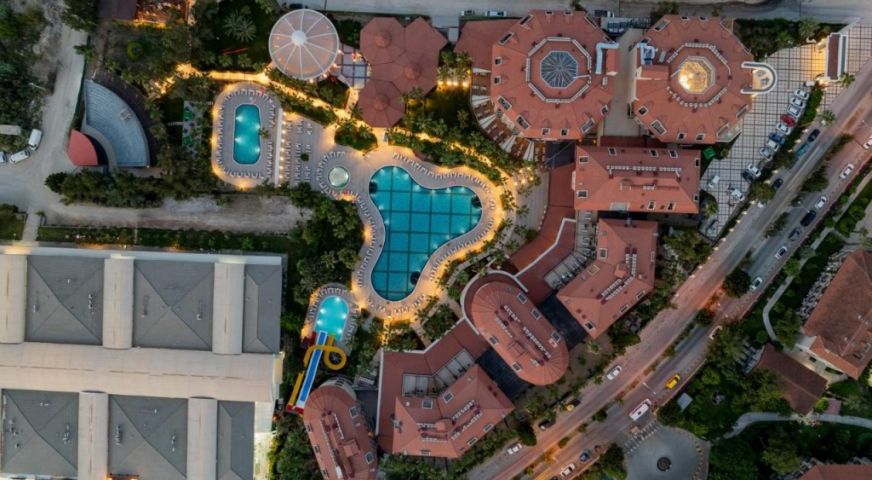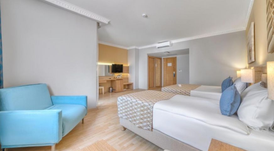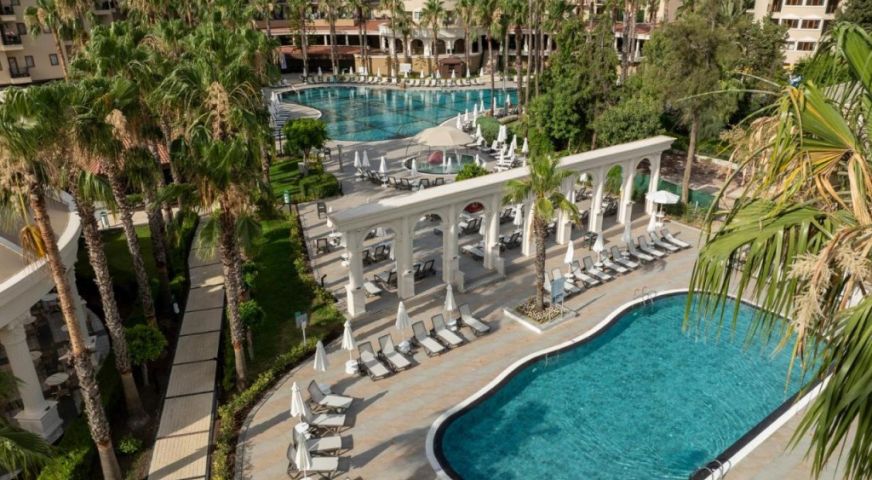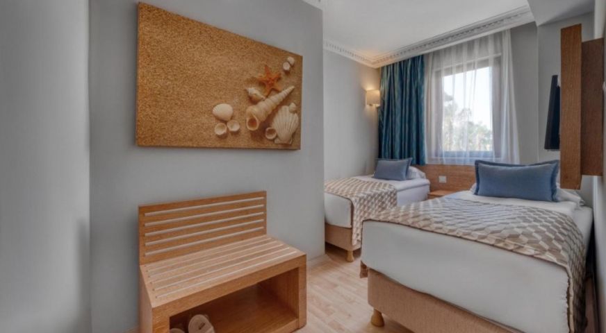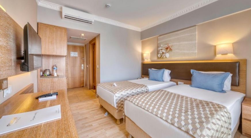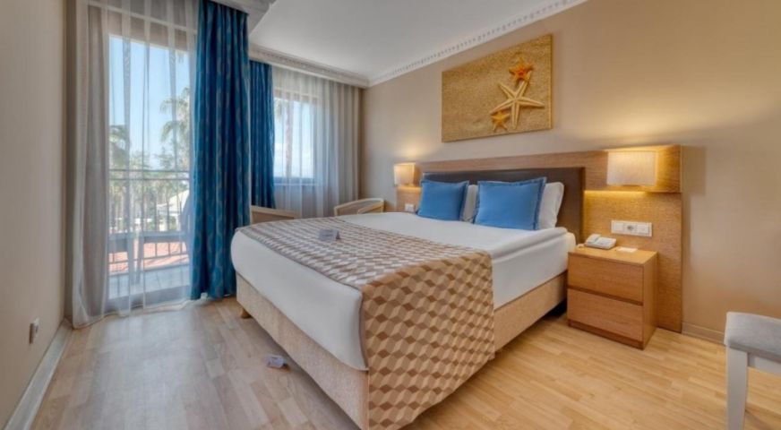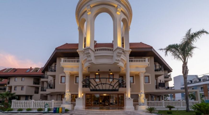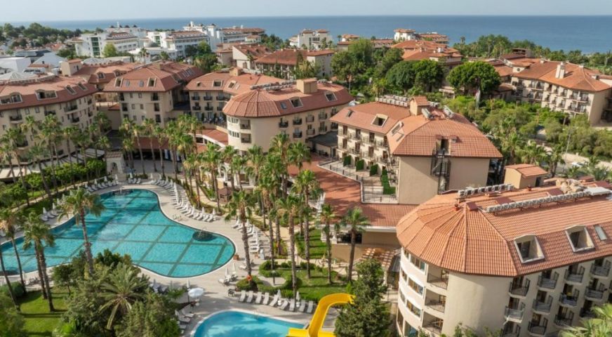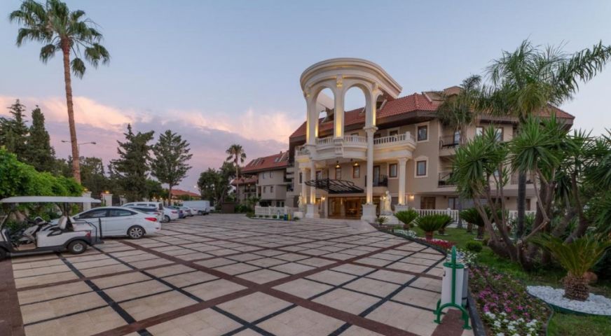 Комфортен хотел с просторна зелена площ в Сиде. Развита инфраструктура, частен пясъчен плаж. Подходящо за почивка с деца.