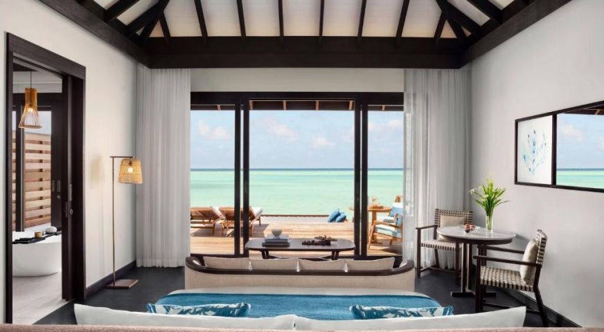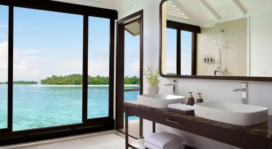 Deluxe Over Water Villa предлага големи лични зони, разделена тераса над лагуната и гардеробна до банята. Отпуснете се на удобни шезлонги или се потопете във вана за двама с гледка към слънчевите лъчи и лагуната.