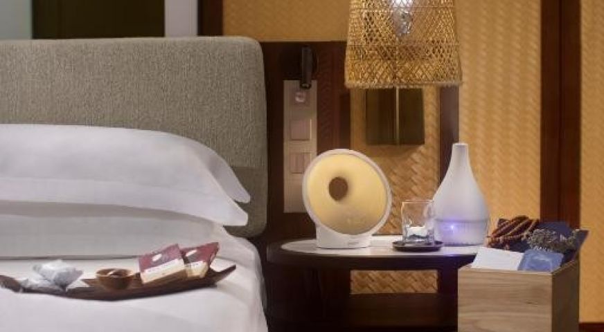 В стаите: Стаята разполага с Wi-Fi, телевизор, климатик, телефон, сейф, станция за чай, вана/душ, сешоар, чехли, халат, тоалетни принадлежности, тераса, кафе машина, докинг станция за iPod, постелка за йога. Предлагат се също минибар и рум сървис.