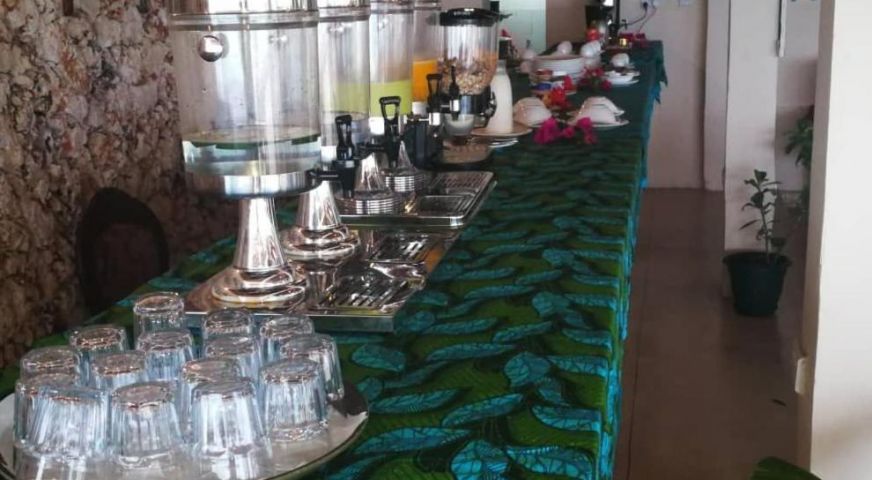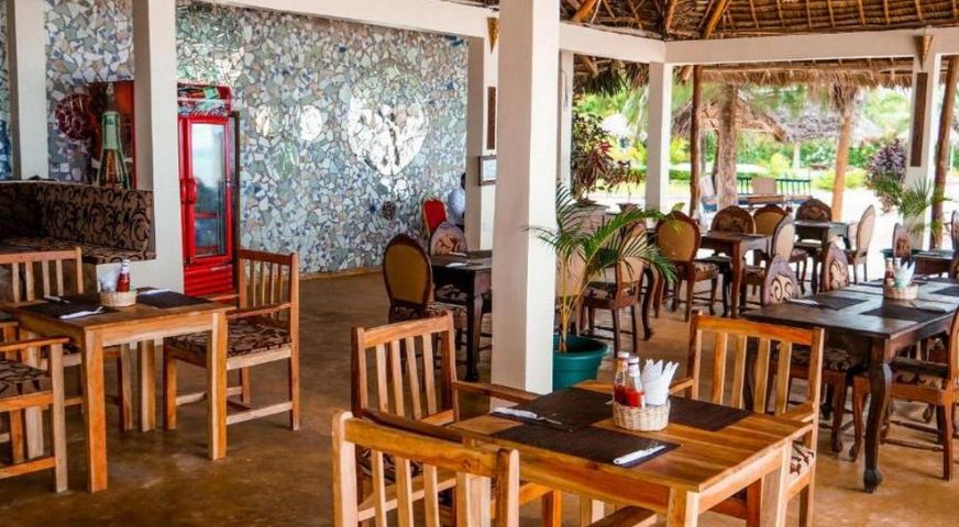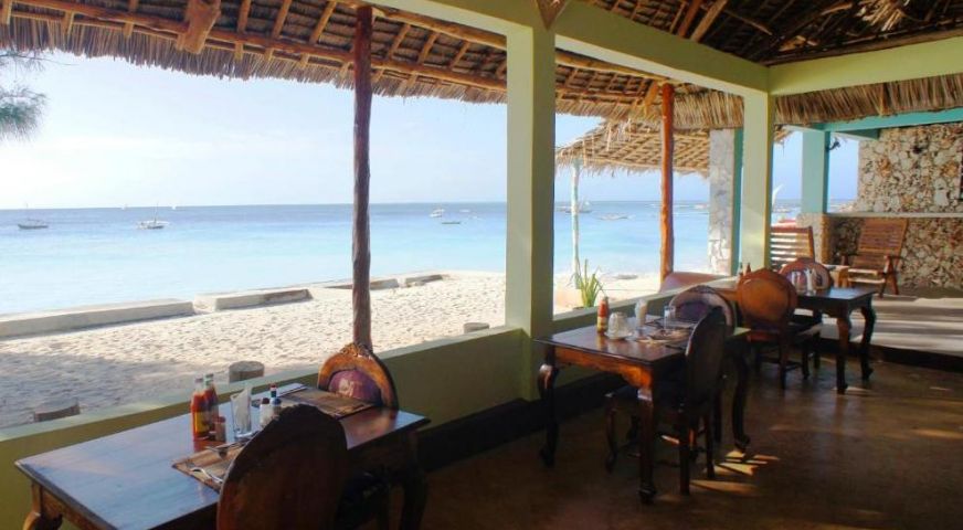 Ресторантът е откъм страната на плажа и предлага невероятна гледка към океана. Менюто включва разнообразие от опции, включително традиционни занзибарски ястия, пресни морски дарове и вегетариански изкушения, гарантирайки, че има по нещо за всеки.