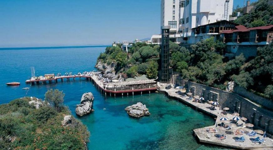 Korumar Hotel De Luxe се намира на брега на морето, на 130 км от летище "Милас" и на 1 км от центъра на Кушадасъ.
