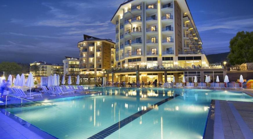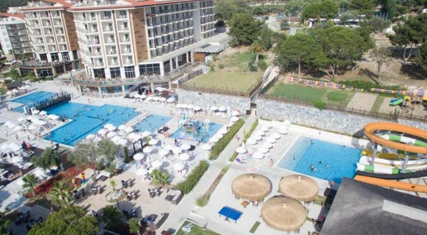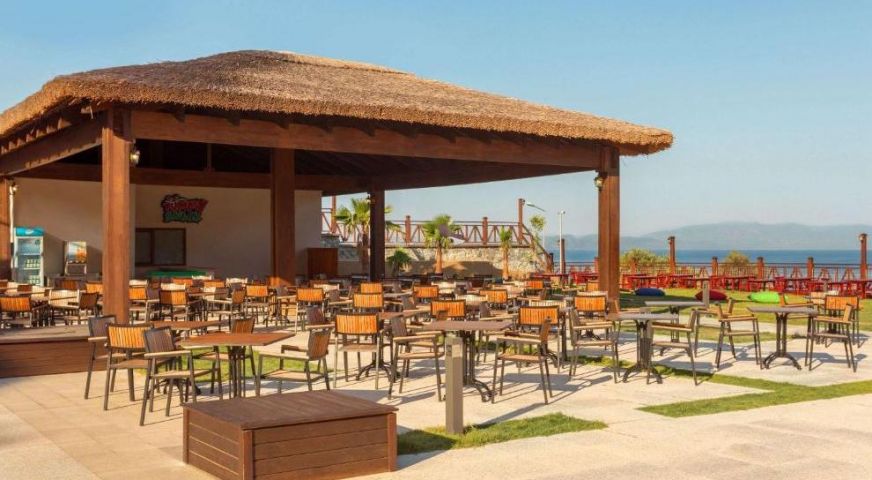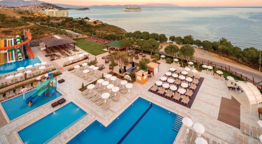 Хотелът се намира на 2 км от собствен пясъчно-чакълест плаж, осигурен е безплатен шатъл до плажа на всеки час от 10:00 до 16:00 часа в периода от 1 май до 30 октомври. Барът на плажа предлага безплатни безалкохолни напитки, бира и закуски. 4 открити басейна (единият от тях се отоплява през студения сезон). Предлага също основен басейн (617 кв.м), басейн с джакузи (380 кв.м), закрит басейн (78 кв.м), детски басейн (63 кв.м), аквапарк за възрастни и аквапарк за деца с водни пързалки и допълнителни 2 басейна. Чадъри, шезлонги, матраци и плажни кърпи на басейна и на плажа се предоставят безплатно. Осигурен е безплатен транспорт до плажа.