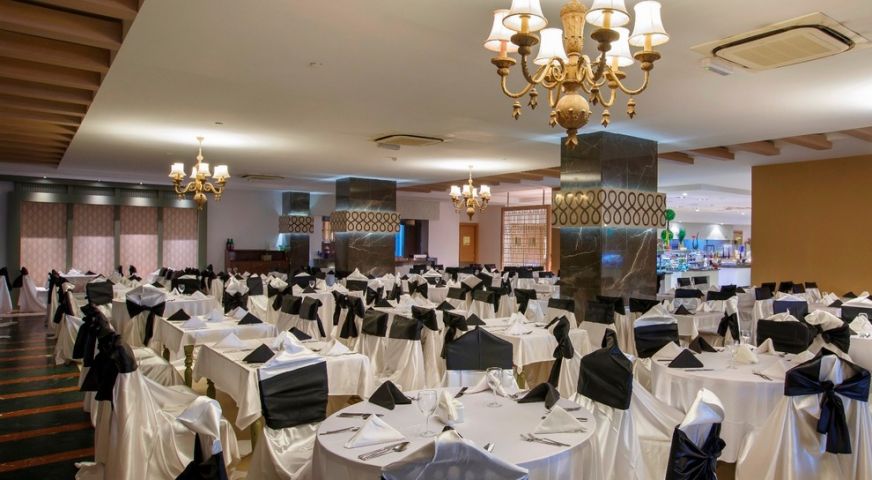 На разположение на гостите е основен ресторант за закуска, късна закуска, вечеря и нощна закуска. Снек барът на плажа работи от 12:30 до 17:30 ч. 2 а`ла карт ресторанта - турски и италиански. Разнообразни напитки се предлагат в 4 бара, единият от които работи денонощно.