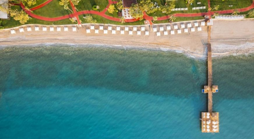Плаж: Разположеният край морето хотел Rixos Beldibi има частен плаж с безплатни чадъри и шезлонги.