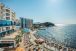 Собствен, малък пясъчно-чакълест плаж и платформа, инфинити басейн с панорамен изглед към Егейско море, закрит басейн. На плажа на хотела има съоръжения за водни спортове и дайвинг център. Чадъри, шезлонги и плажни кърпи се ползват безплатно.