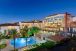 Собствен пясъчен на 3,5 км от хотела с три различни платформи и кей. Безплатен транспорт до плажа 4 пъти на ден. На разположение на гостите са 2 открити басейна и открит термален басейн, който работи 12 месеца и е отворен между 09:00 и 18:00 часа. Вътрешен термален басейн, отворен от 09:00 до 19:00 часа. Чадъри, шезлонги и матраци на плажа и басейна с ползват безплатно.