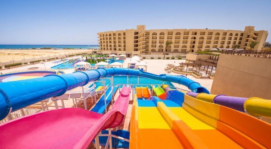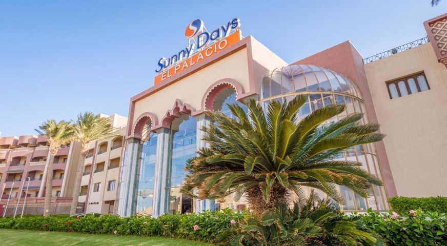 Sunny Days El Palacio предлага автентична ориенталска архитектура, просторна територия, частен плаж, лагуна и мост, водещ към малък остров. Хотелът разполага с открити басейни, аквапарк зона за деца, основен ресторант, тематични ресторанти, барове, амфитеатър, СПА център и търговски обекти.