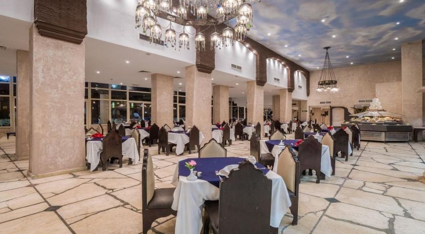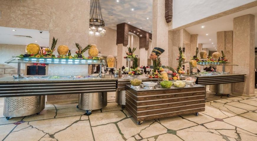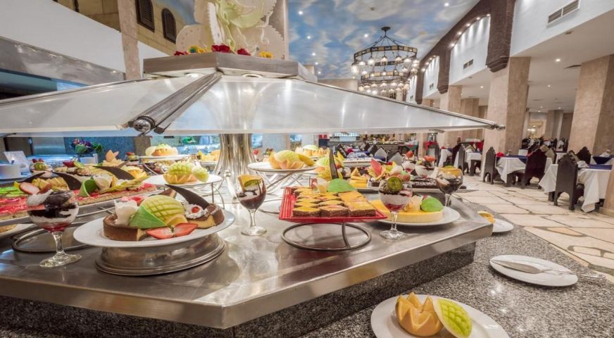 Концепцията е All Inclusive – закуска, обяд, вечеря на блок маса, леки следобедни закуски, сладкиши, местни алкохолни и безалкохолни напитки в определени часове от деня. Хотелът разполага с основен ресторант и няколко а ла карт ресторанта (италиански, ориенталски и рибен), както и разнообразни барове – лоби бар, бар на плажа, бар при басейна.