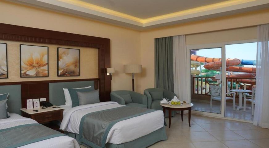 Хотелът предлага настаняване в просторни и функционални стаи с гледка към градината, басейна или аквапарка. Всяка стая разполага с