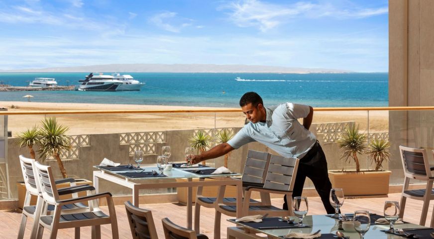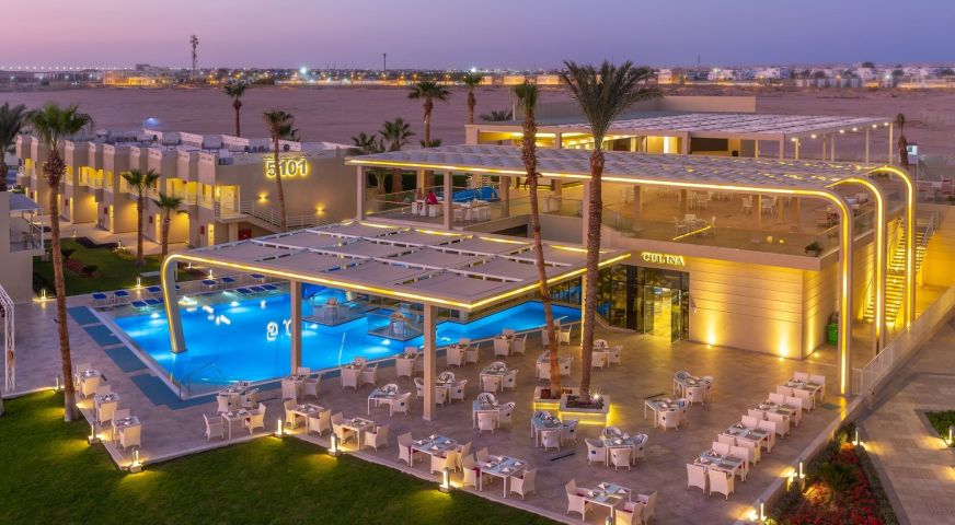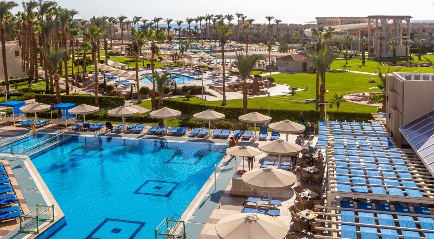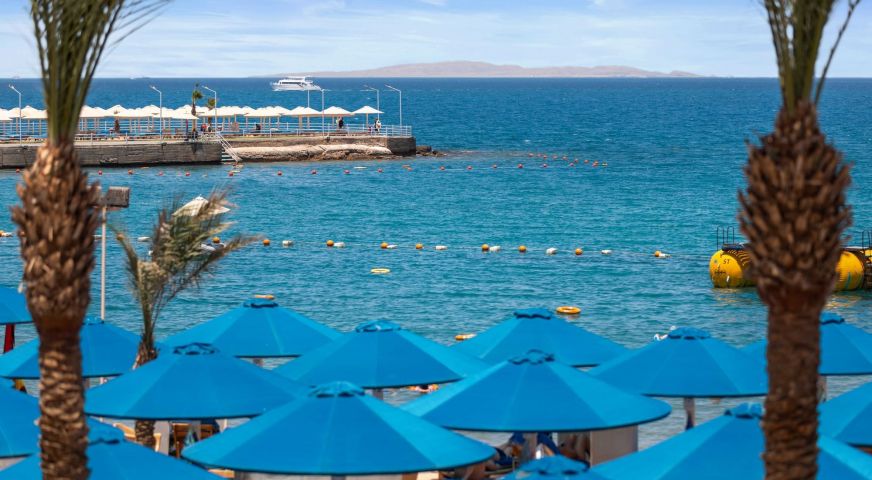 Намира се на 11 км. от летище Хургада, на 14 км. от центъра на Хургада, на брега на морето. Посторен през 1992 г., последно реновиран през 2011 г.