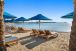 Собствен, пясъчен. Чадъри, шезлонги и матраци на плажа и при басейна - безплатно.
