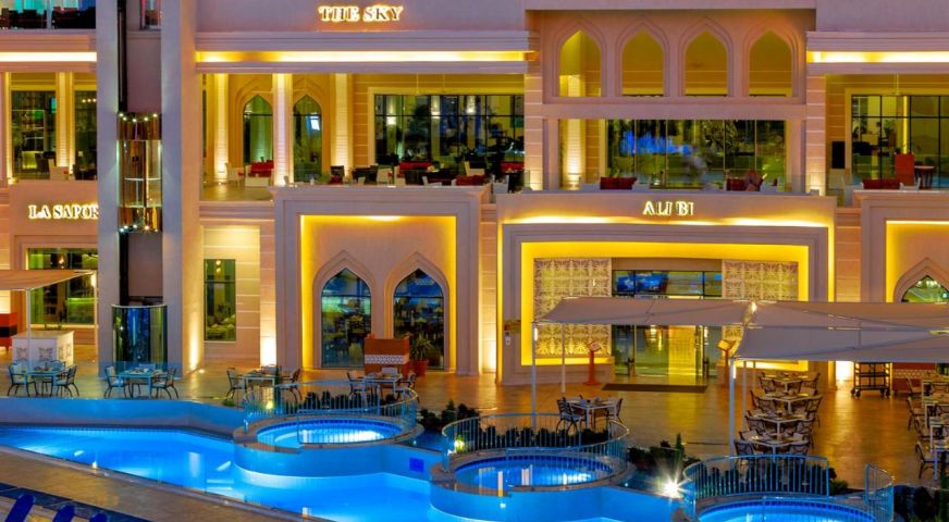 Основен ресторант, снек ресторант, снек бар на плажа ( Albatros beach Resort), 3 а-ла карт ресоранта (италиански, азиатски,ориенталски), 7 бара, Red Sky Bar (в Beach Albatros Resort), наргиле бар, 7 открити басейна и (1 отопляем през зимния сезон), гостите на хотела могат да използват и басейните в хотелите (Albatros Aqua Park - 9 басейна, Aqua Vista – 6 басейна), дискотека, 9 водни пързалки за възрастни - Albatros Aqua Park ), 2 тенис кортa, СПА център, магазини, конферентни зали, Wi-Fi