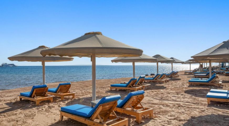 Плаж: Собствен. Пясъчен НА 600 м. от хотела. Ползва плажа на хотел Albatros beach Resort. Безплатен шатъл до плажа. Чадъри, шезлонги и матраци на плажа и при басейна - безплатно.