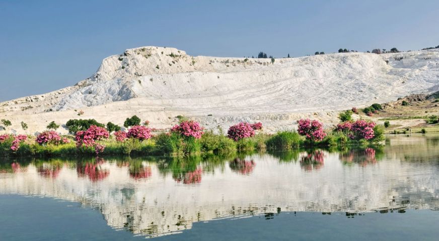 Посетете магическата и зрелищна природна местност, уникална в целия свят. Варовиковите отлагания от горещите минерални извори са облекли скалистите тераси в ослепителна белота. Оттам идва и името на Памуккале - "замък от памук". Разходете се из улиците на древния град Хиераполис и се върнете назад във времето, докато разглеждате храма на Аполон и Плутониум, портата на Домициан и главната улица. Не пропускайте да видите и античния театър, както и басейна на Клеопатра.