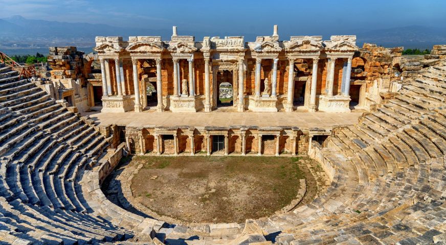 Посетете магическата и зрелищна природна местност, уникална в целия свят. Варовиковите отлагания от горещите минерални извори са облекли скалистите тераси в ослепителна белота. Оттам идва и името на Памуккале - "замък от памук". Разходете се из улиците на древния град Хиераполис и се върнете назад във времето, докато разглеждате храма на Аполон и Плутониум, портата на Домициан и главната улица. Не пропускайте да видите и античния театър, както и басейна на Клеопатра.