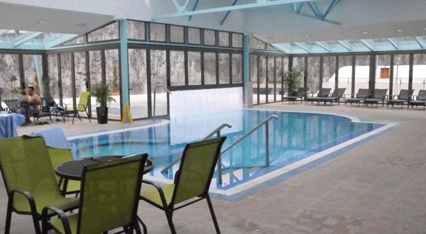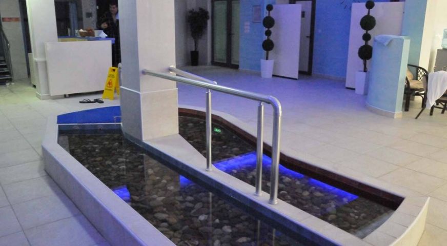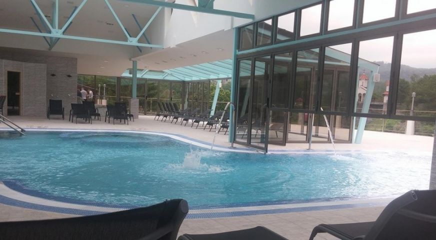СПА център: Уелнес центърът на хотела предлага вътрешен и външен басейн, сауна, парна баня, джакузи, тепидариум – топло помещение с подово отопление и подгреваеми седалки, солна стая.