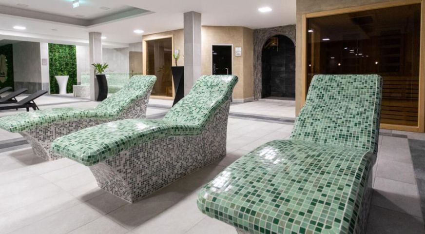 Уелнес центърът на хотела предлага вътрешен и външен басейн с минерална вода, джакузи, инфрачервена и финландска сауна, парна баня, тепидариум - топло помещение с подово отопление и подгреваеми седалки, солна стая; с доплащане се прадлагат процедура като масаж, електротерапия, магнетотерапия, хидротерапия, калолечение, ултразвукова терапия, кинезитерапия;