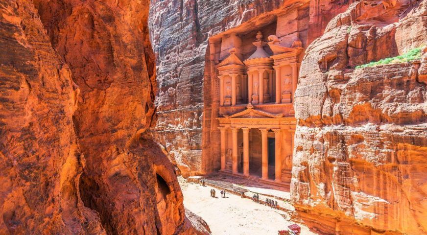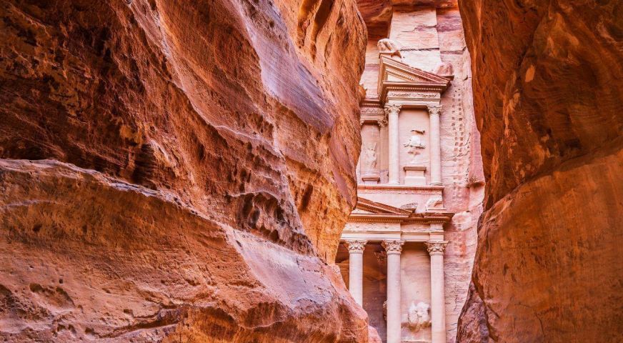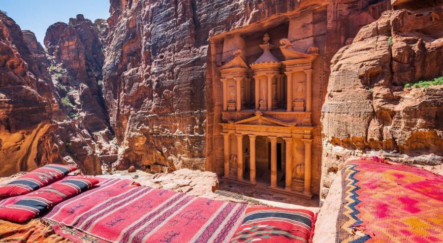 Потопете се в магията на Петра - древния „Изгубен град“, който се разкрива пред вас след пешеходна разходка по внушителен каньон със стръмни скални стени, известен като Сик. Там, сред скалите, ще откриете шедьоври на древната архитектура - гробници, храмове и цели фасади, изсечени директно в пясъчника от набатеите преди повече от 2000 години.