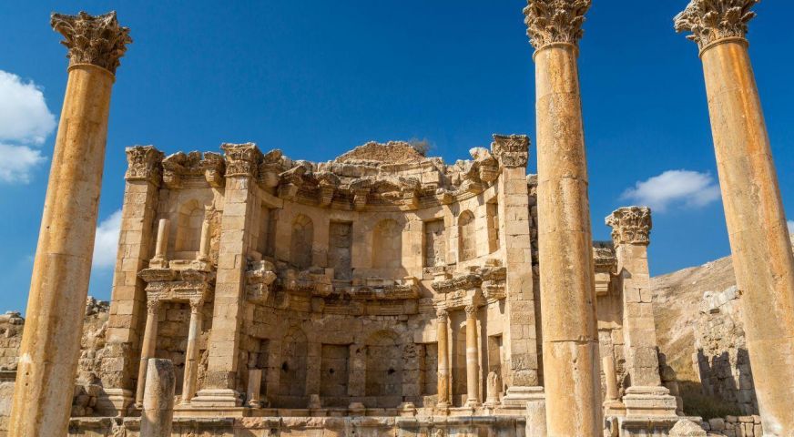 Джераш - едно от най-впечатляващите археологически чудеса на Близкия изток - ви пренася директно в златната епоха на Римската империя. Наричан още „Помпей на Изтока“, този древен град е забележително добре запазен, със своите монументални руини, които разкриват величието и реда на римското градоустройство.