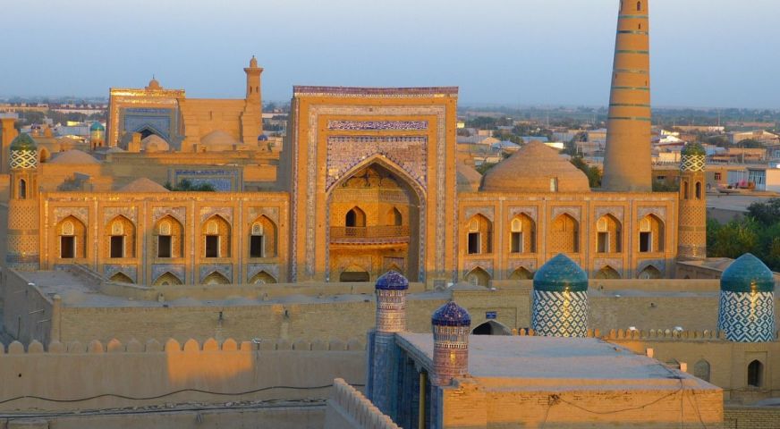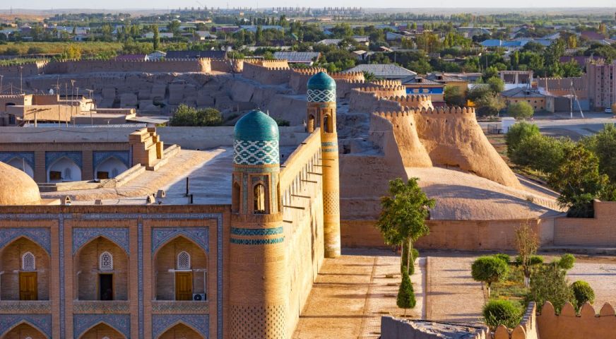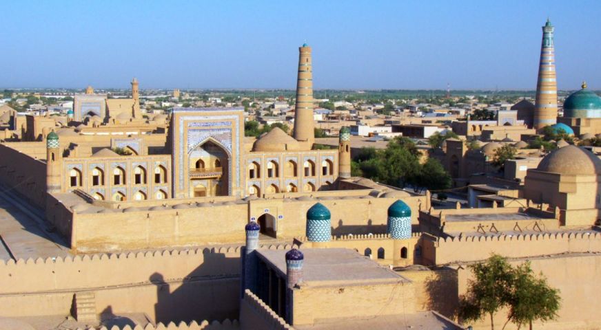 Закуска. Сутрешен полет до Ургенч. Посрещане на летището и отпътуване до Хива (около 30 км). Пешеходна разходка в Хива с местен екскурзовод: архитектурният комплекс "Ичан Кала" – обект под закрилата на ЮНЕСКО и археологически музей под открито небе, обграден от крепостни стени, който включва повече от 60 исторически паметника и 250 старинни къщи, сред които множество древни дворци, джамии, мавзолеи, медресета, минарета, местен базар и работилница на местни занаятчии. Най-значимите обекти са медресето "Мохамед Амин хан" - най-голямото в Централна Азия, медресето "Мохамед Рамин хан" - наречено на един от най-образованите представители на династията Кунграт, който някога е управлявал Хива; минарето "Калта", изцяло покрито с остъклени плочки и майолика и символ на града с впечатляващи размери; джамията "Джума"; дворецът "Таш Хаули" - лятната резиденция на хановете от Хива; мавзолеят на Пахлаван Махмуд - известен поет и воин от XIV век; минарето "Ислам Ходжа" - най-голямото в Узбекистан с височина от почти 57 метра; крепостта "Куня Арк", откъдето се открива панорамна гледка към стария град. Вечеря. Нощувка.