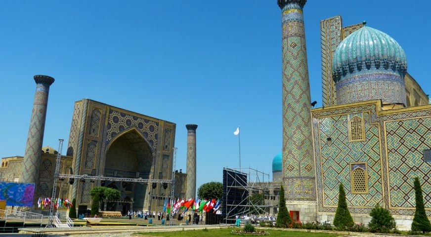 Закуска. Самарканд - някогашната столица на империята на Тимур, днес е част от Списъка за световно и културно наследство на ЮНЕСКО. Обликът на пустинния град се формира от богато украсени дворци и джамии, медресета и мавзолеи, извисяващи се минарета и масивни куполи. Туристическа програма в Самарканд с местен екскурзовод следобед: световно известният площад "Регистан" - сърцето на града, където се намират трите красиви медресета "Улуг Бег", "Шер Дор" и "Тила Кори"; джамията "Биби Ханъм", наречена в чест на най-възрастната и любима съпруга на Тимур и мавзолеят "Гур Емир" - царската гробница на Тимур и неговите потомци, чиято архитектура се смята за прототип на други подобни паметници в Азия, включително на "Тадж Махал" в Агра. Вечеря в местен ресторант. Връщане в хотела. Нощувка. Туристическата програма в Самарканд с местен екскурзовод продължава със Сиабския пазар, предлагащ голямо разнообразие от ръчно изработени музикални иструменти и красиви изтъкани килими; обсерваторията "Улуг Бег" - астрономическото чудо на средновековния Узбекистан; историческият музей "Афрасиаб", в който се помещават най-ценните артефакти от древната история на Самарканд, илюстриращи историята на града по време на завоюването на Александър Велики; Мавзолеят на библейския пророк Даниил, почитан като свято място от представителите на три световни религии – исляма, юдаизма и християнството. Посещение на некропола "Шахи Зинда" (бълг. "Живият цар") - комплекс от 11 мавзолея, наричан още "Град на мъртвите". Изключителните шедьоври от теракота, мозайки и заплетени облицовки с плочки са били създадени от персийски и азербайджански майстори, а заедно представляват образец на керамичното изкуство, останал ненадминат в Централна Азия. Посещение на фабрика за производство на самаркандска хартия от кора на черница. Вечеря. Нощувка.
