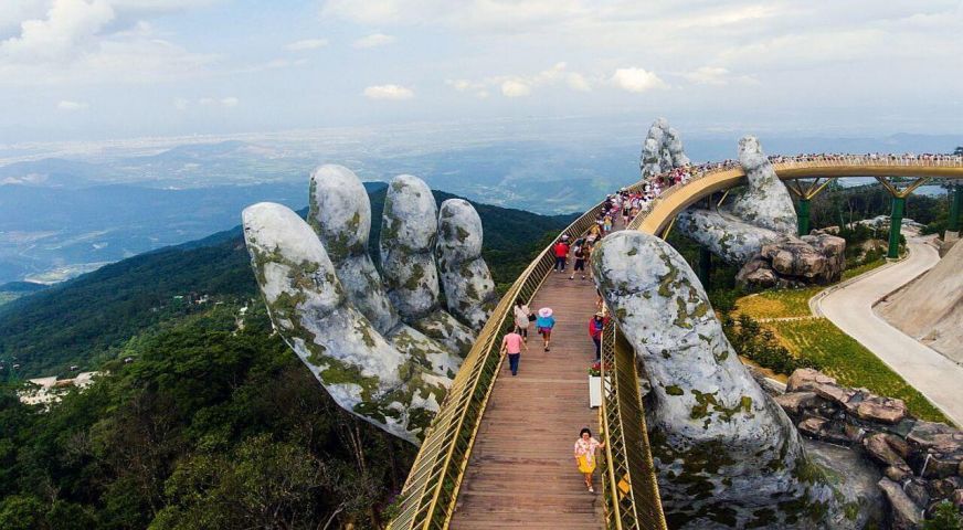 Ба На Хилс е известен с красива природа и с най-дългата лифтова линия в света – над 5 километра. Основната функция на моста е да свърже лифта с началото на планинската гора, така че посетителите да не трябва да изкачват стъпала.