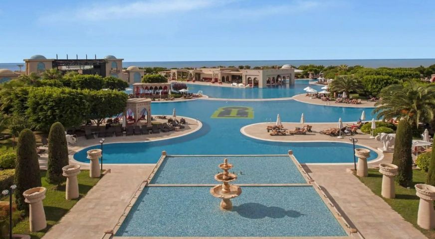 Хотелът разполага с басейни тип аквапарк и осигурява директен достъп до пясъчен плаж на Средиземноморското крайбрежие.