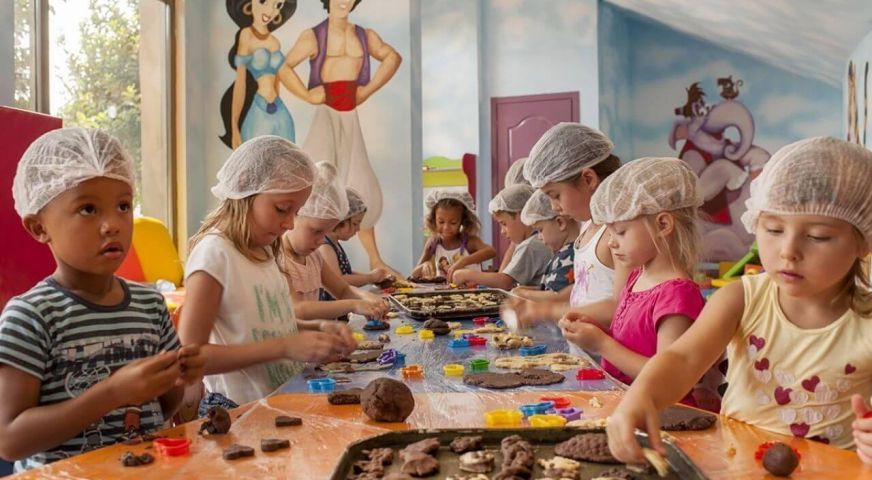 За децата: детско меню, детска площадка, мини клуб (4-12 г.), 2 детски басейна – открит и закрит, водни пързалки, мини дискотека, анимация.