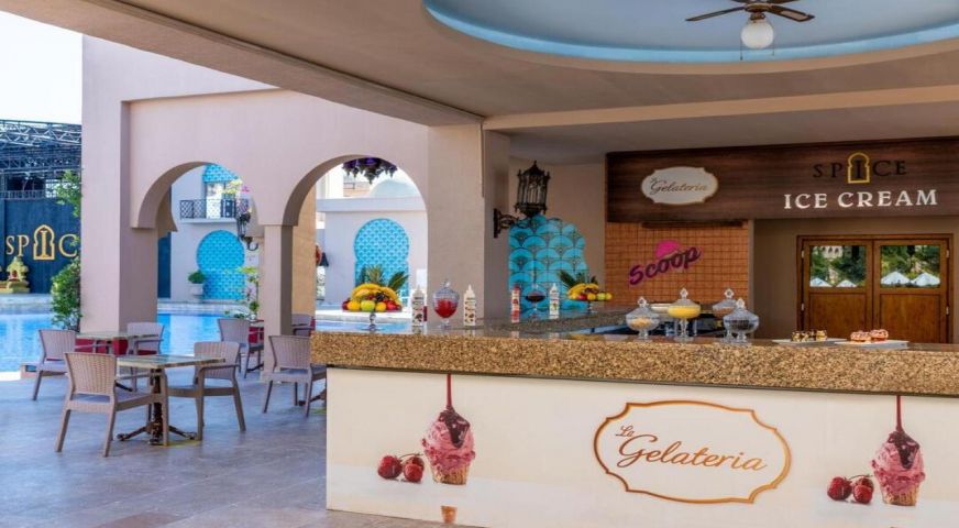 Spice Hotel & Spa предлага настаняване на база ол инклузив и включва 3 а-ла-карт ресторанта, в които се сервират турски, италиански и азиатски ястия(с предварителна резервация съгласно концепцията на хотела). На откритата тераса гостите могат да се насладят на коктейли от различните барове в комплекса.