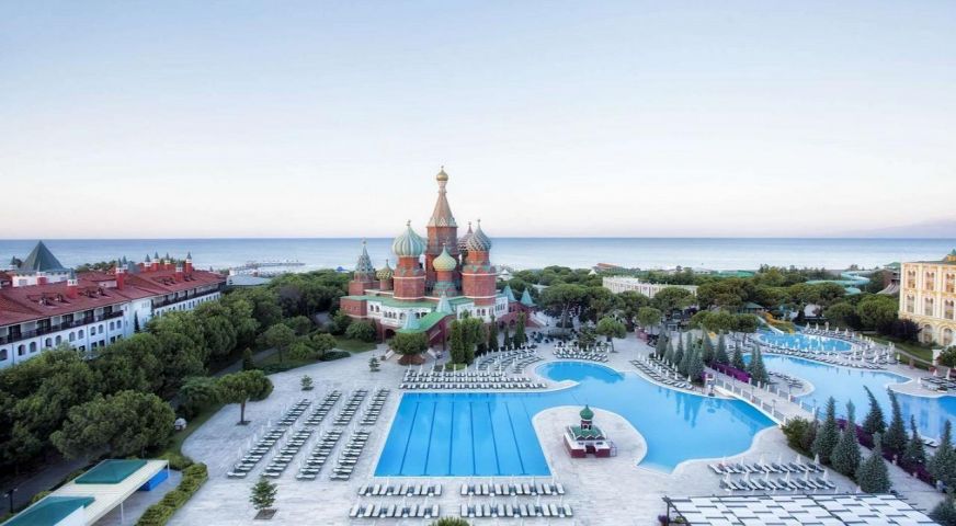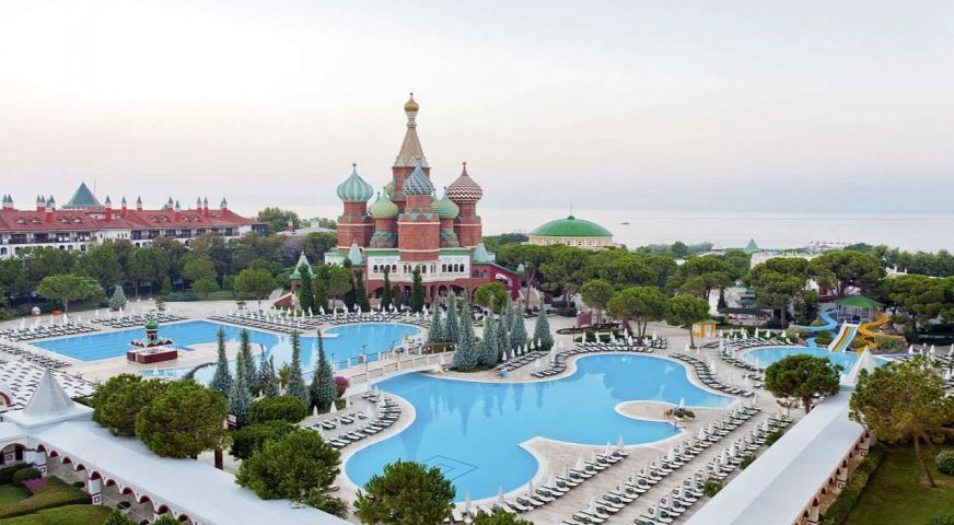Asteria Kremlin Palace се намира в Кунду, на 12 км от летището в Анталия и на 21 км от центъра на град Анталия. Хотелът е с уникална архитектура наподобяваща руските дворци.