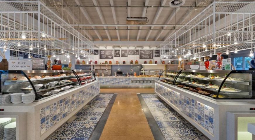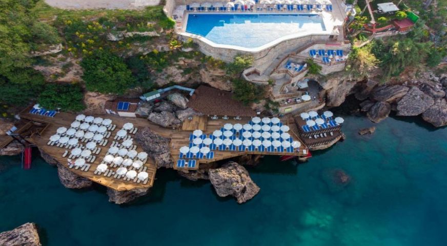 Основен ресторант, 2 а - ла - карт ресторанта, 5 бара, 2 открити басейна, 2 закрити басейна, фитнес жентър, турска баня, сауна, масаж, интернет кафе, лекарски кабинет, магазини. За децата: детски клуб(4-12г.), детски басейн, детегледачка(платено) Безплатни услуги: фитнес, сауна, турска баня, джакузи, тенис на маса, Платени услуги: масаж, билярд, дискотека, минибар център за красота, фризьор, телефон, факс. Плаж: хотела не разполага с плажна ивица, тъй като е разположен над морския бряг, в скалиста местност.
