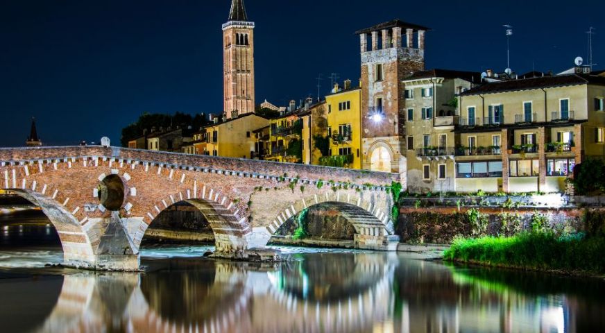 Верона, разбира се, се свързва основно с героите на Шекспир - Ромео и Жулиета, но този град има хилядолетна история. Ще разгледаме основните забележителности като започнем от величествената Арена ди Верона на площад Бра – най - добре съхранените римски амфитеатри все още функциониращ като сцена на известния оперен фестивал във Верона. От главния градски площад „Бра” с редица кафенета и ресторантчета по него по основната улица Via Mazzini ще се озовем на невероятно живописния площад Ербе. Считан за сърцето на Верона. От там плавно ще се прехвърлим на следващия площад Пиаца дей Сеньори – в миналото център на политическия живот, заобиколен от разкошни палати. От там ще се отправим към едноименната къща на Жулиета, където се сбъдват желанията свързани с любов.