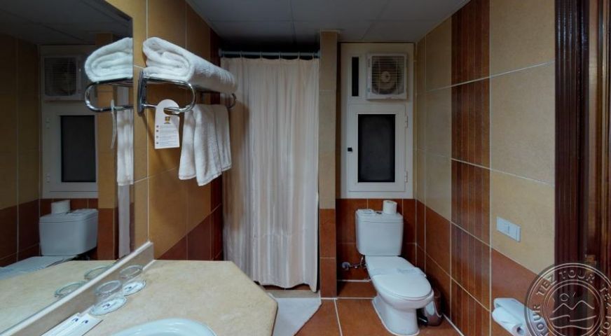 Standard Room (26 м2, гръб, басейн, изглед към градината, макс. 3 души, душ, балкон или тераса (не навсякъде: 72% от стаите само с прозорец) 6 м х 5,5 м).