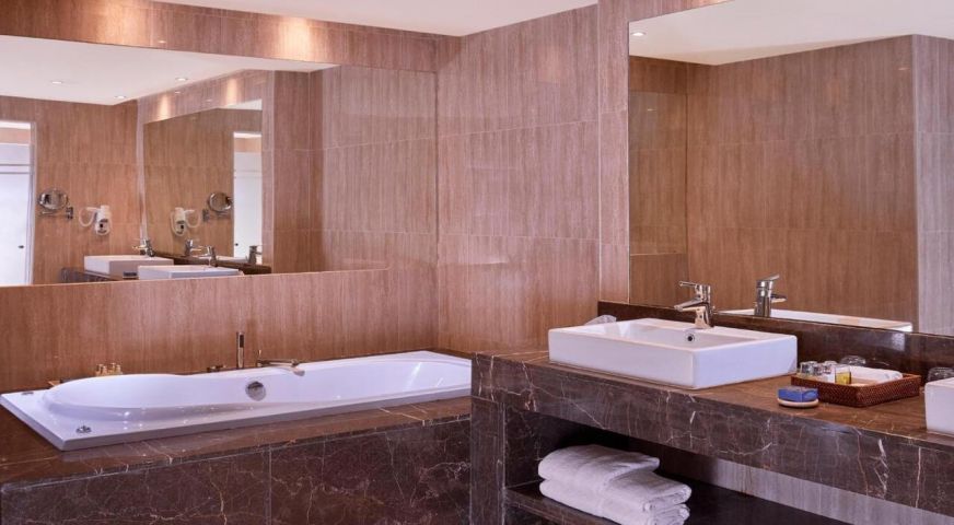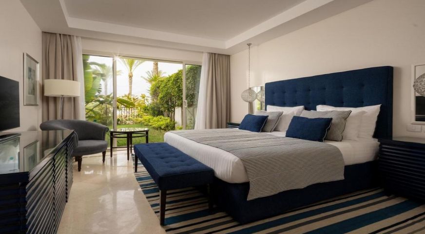 Хотелът разполага с 263 стаи, включително 78 свързани стаи и 174 семейни стаи, които осигуряват удобство за различни предпочитания. Стаите са просторни и елегантно обзаведени, с площ от 40 м² за стандартните стаи и 50 м² за семейните стаи. Всяка стая е оборудвана с климатик, минибар, телевизор с плосък екран, сейф, телефон, апарат за кафе/чай и балкон или тераса с изглед към морето или градините.