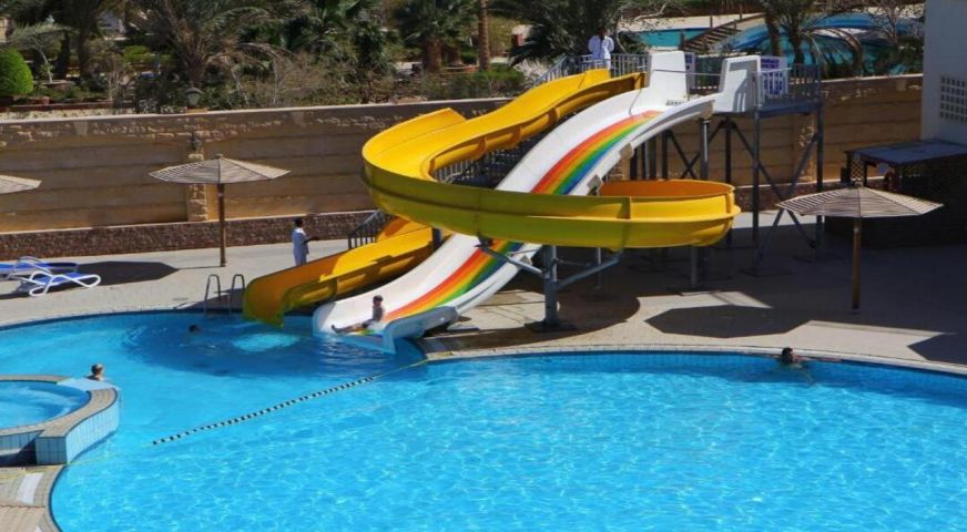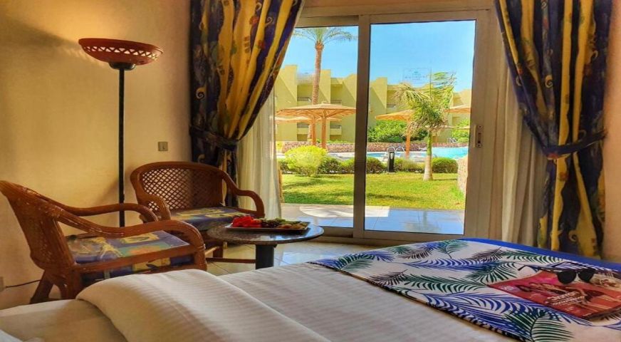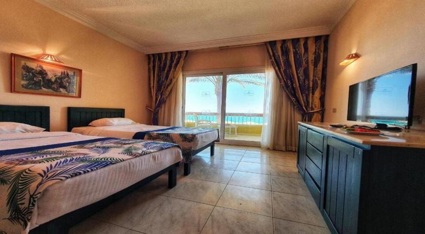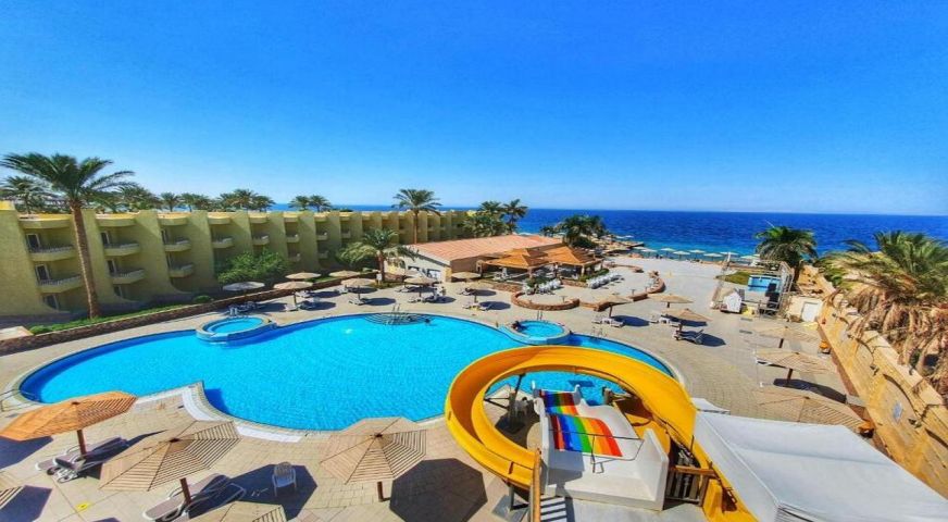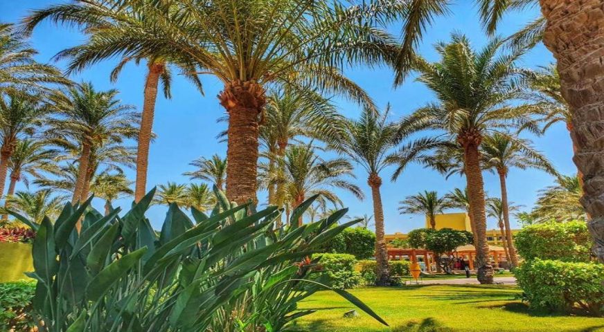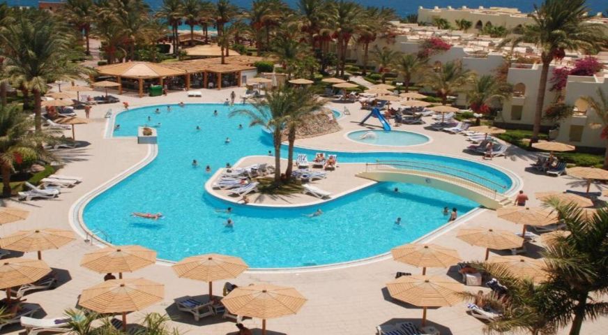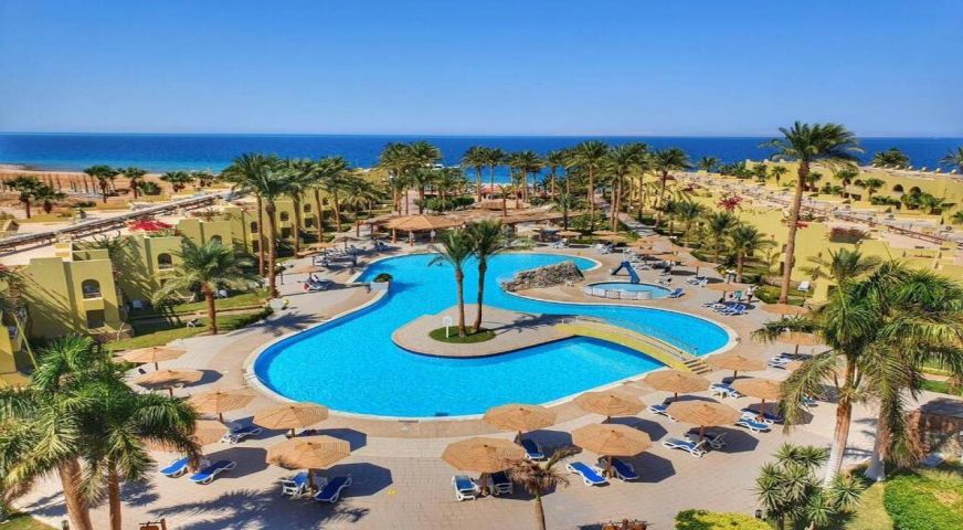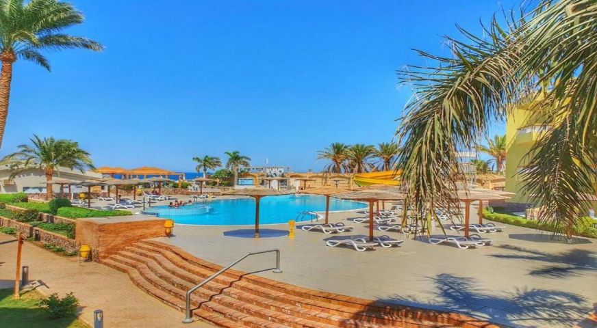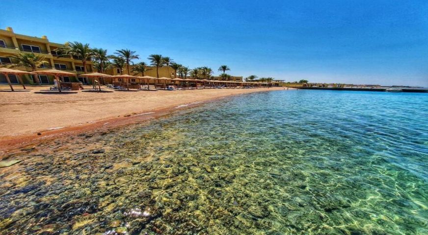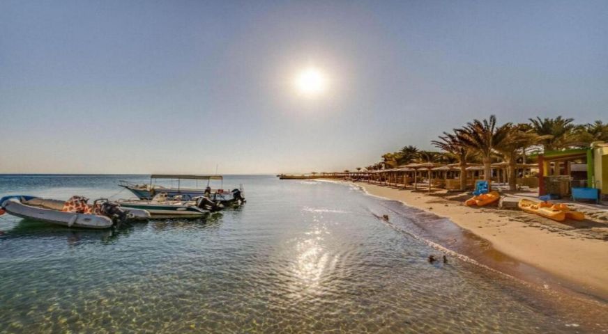 Palm Beach Resort 4* е обзаведен в модерен стил, а обстановката и атмосферата са традиционни за Египет. Хотелът разполага с прекрасни гледки към Червено море, с 2 басейна, собствен пясъчен плаж и клуб по гмуркане. Гостите на хотела имат на разположение още: ресторант с международна кухня, бар с напитки и леки закуски, релаксиращи масажи, сауна и фитнес, екип от аниматори, организиращи различни занимания и игри през целия ден. Центърът по гмуркане - The Caves, предлага различен тип водни спортове, като гмуркане, шнорхелинг и уиндсърф.