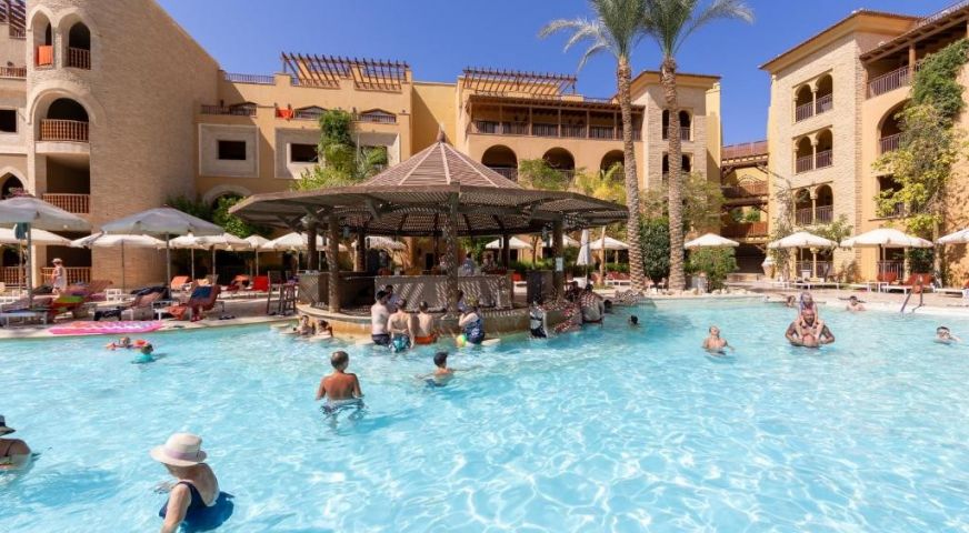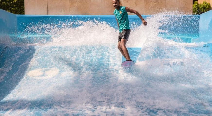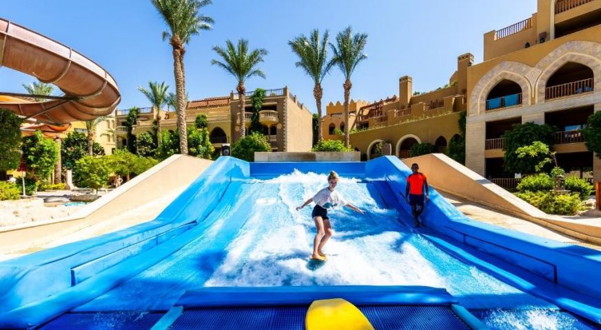 Разположение: Grand Waterworld Makadi (по-рано известен като Sunwing Waterworld Makadi) се намира на 25 км от летището в Хургада и на 35 км от центъра на града и на първа линия от брега на морето. Построен около огромен воден парк, с огромни водни пързалки, басейн с вълни, Flowrider и ленива река, това е идеалното място за бебета и деца от всички възрасти, които обичат водата.